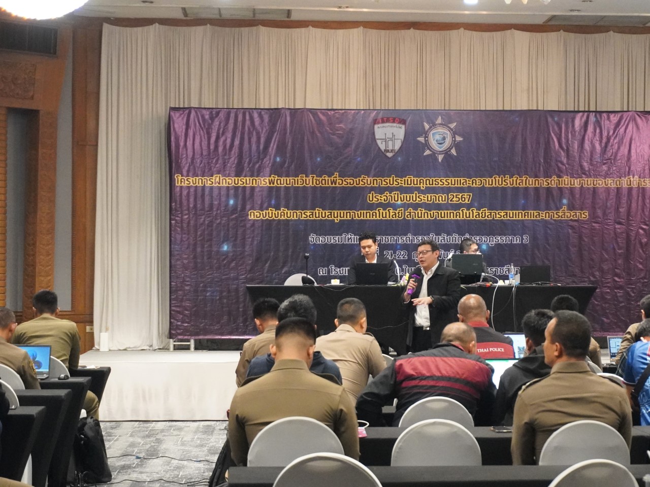 วันพฤหัสบดีที่ 22 ก.พ.67 กองบังคับการสนับสนุนทางเทคโนโลยี ร่วมจัดโครงการฝึกอบรมการพัฒนาเว็บไซต์เพื่อรองรับการประเมินคุณธรรมและความโปร่งใสในการดำเนินงานของสถานีตำรวจ เพื่อให้กับข้าราชการตำรวจในสังกัด ตำรวจภูธรภาค 3 สามารถอำนวยความสะดวกให้แก่ประชาชน และ เจ้าหน้าที่ตำรวจ ที่ต้องการทราบข่าวสารต่าง ๆ ของหน่วยงานในสำนักงานตำรวจแห่งชาติ รวมทั้งให้ข้าราชการตำรวจที่มีความสนใจในด้านการพัฒนาเว็บไซต์ หรือผู้ที่มีหน้าที่ประชาสัมพันธ์ข้อมูลต่างๆ ของหน่วยงานผ่านเว็บไซต์ ได้เพิ่มพูนความรู้เกี่ยวกับการพัฒนาเว็บไซต์